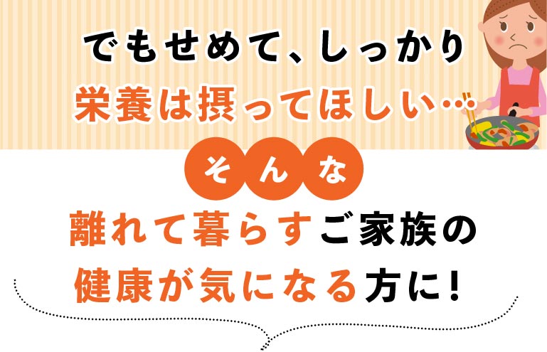 離れて暮らすご家族がきちんと「自炊」をして、健康的な食生活を送っているかどうか、心配になりますよね?